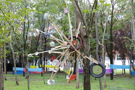 直面树林与工地交界的特殊场域,通过艺术介入实现工业与自然的诗意对话,展现了不同教育阶段美育衔接的创新模式。