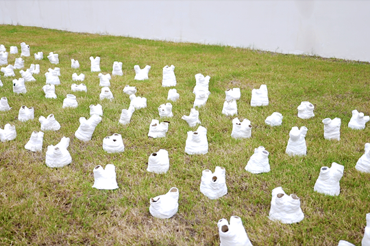 用石膏绷带在树干间塑造出生动的手势形态,以极具亲和力的方式打破人与自然之间的隔阂,让艺术成为连接彼此的温暖媒介。