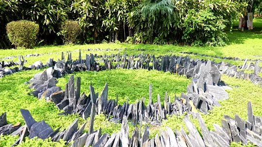 3吨青石板,构建起直径9米的螺旋石阵,以地质材料呼应宇宙运行轨迹,在厚重与流动间诠释人与自然的关系。