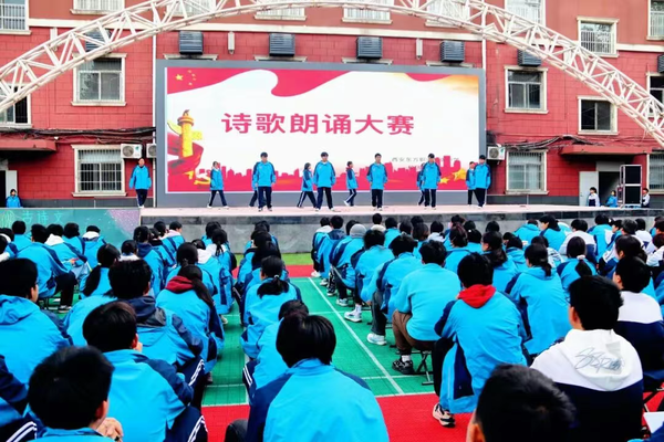 本次活动,职高一、二年级学生全员参与,各班级依次登场,他们身着校服,眼神坚定而充满激情。所朗诵的诗歌,涵盖语文课本里的古典诗词以及自选的中国古代或者现代优秀诗作,如《短歌行》、《将进酒》、《满江红》、《声声慢》、《沁园春·长沙》以及现代作品《这盛世如你所愿》、《你是人间的四月天》等。同学们用真挚的情感、饱满的热情和富有表现力的声音,将一首首经典诗歌演绎得淋漓尽致。