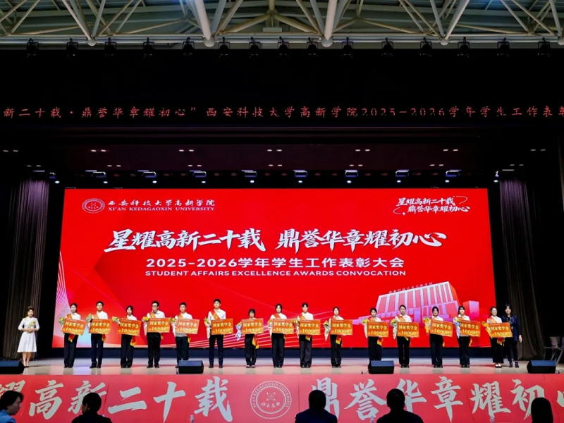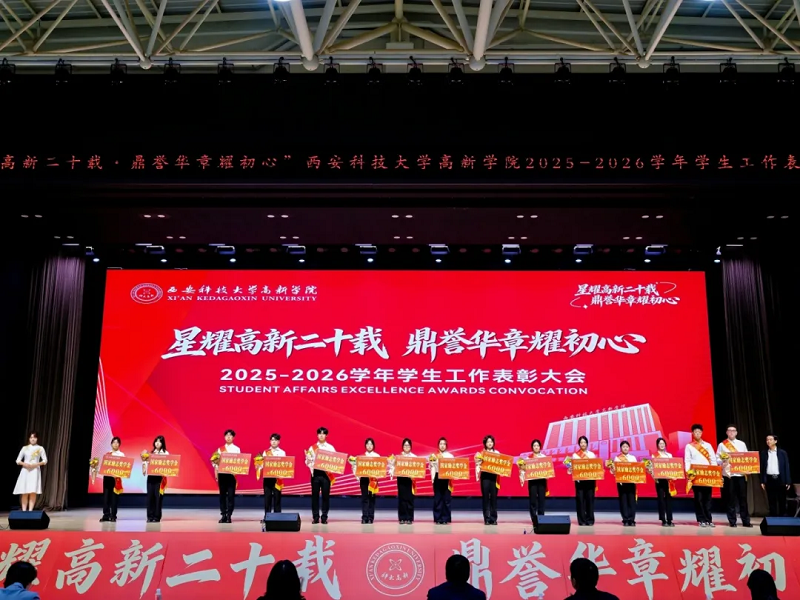 4月15日,西安科技大学高新学院2025-2026学年学生工作表彰大会在学院体育馆隆重举行。大会以“星耀高新二十载 鼎誉华章耀初心”为主题,全面总结2025年学生工作成果,表彰先进典型,凝聚奋进力量,共同展望2026年学生工作发展新篇。